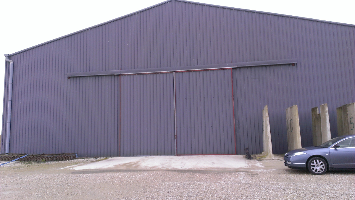 Location entrepôt proche de Vatry (51), à proximité sortie autoroute A26, 1 620 m², location à partir de 400 m² minimum (soit 25,00 € du m² annuels), 12 m sous faitage, 8 m sous panne sablière, portes coulissantes HxL 6x8 et 6x10, dalle lisse (accès chariots élévateurs électriques), pont bascule à proximité, manutention à la demande proposée, possibilité bail de courte durée (minimum 6 mois).